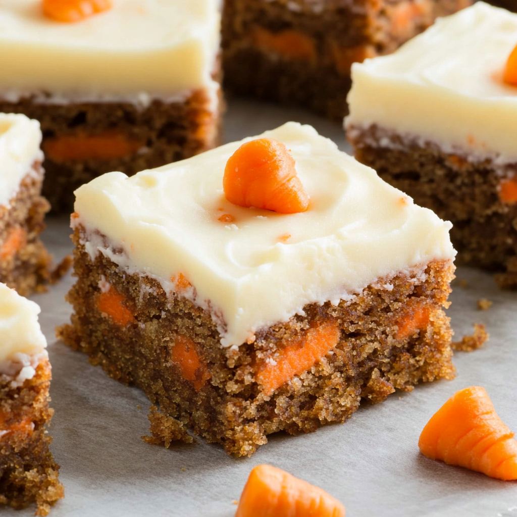 • Store properly for freshness: Keep your frosted carrot cake bars in an airtight container in the fridge. They’ll stay fresh for up to a week—if they last that long!
