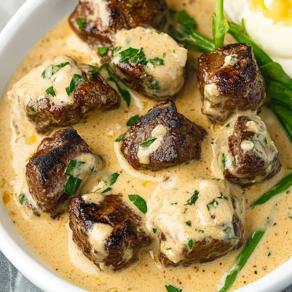 You can either pour that luscious sauce over your steak bites or serve it on the side—both options are wonderful! If you’d like, sprinkle some chopped parsley on top for an extra touch of freshness before serving. Enjoy every delicious bite!