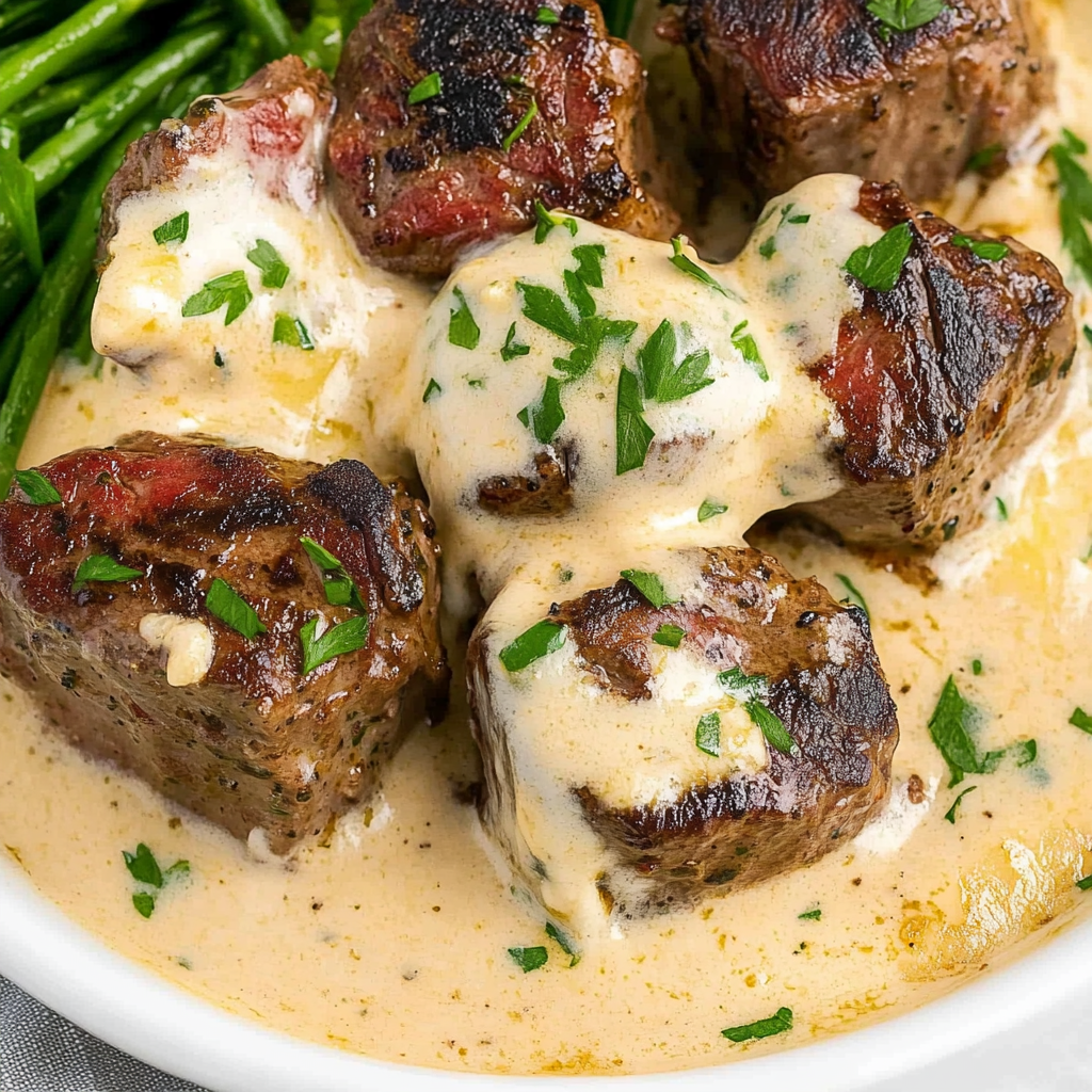 How to Serve Garlic Butter Steak Bites with a Rich Parmesan Cream Sauce
